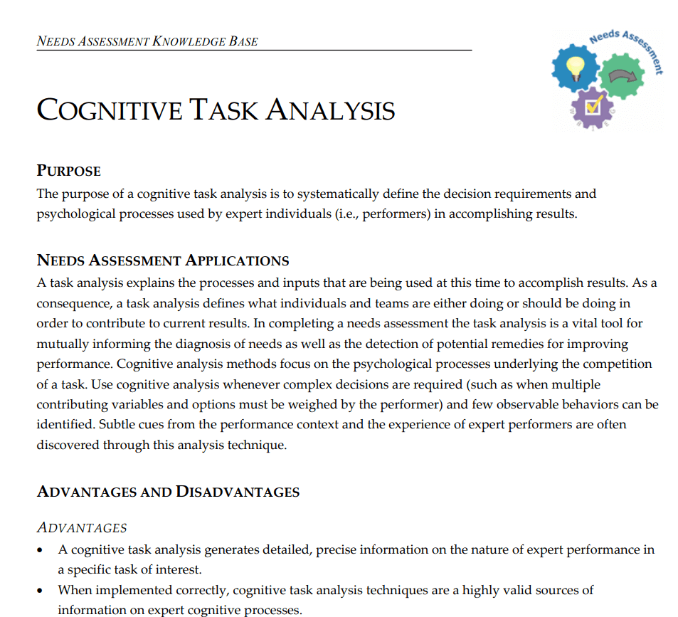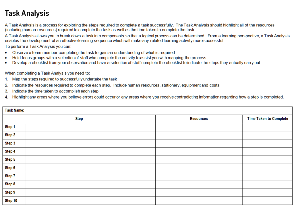 - Not only the task analysis helps in identifying the resources that are required, but it also helps you to improve the existing resources.