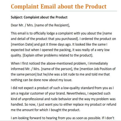 Perfect Complaint Email About Product (4+ Editable Templates)