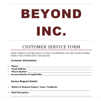 16+ Essential Customer Service Form Examples in MS WORD