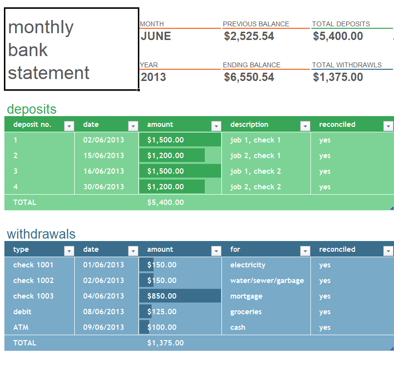 As mentioned earlier, you can use free bank statement templates available here on this page to create a perfect bank statement template. All these templates are available in a customizable format so that you can easily insert your details into a particular template and make it useable for yourself. However, if you want to know how to create a bank statement template from scratch, the following is a list of some of its basic elements: