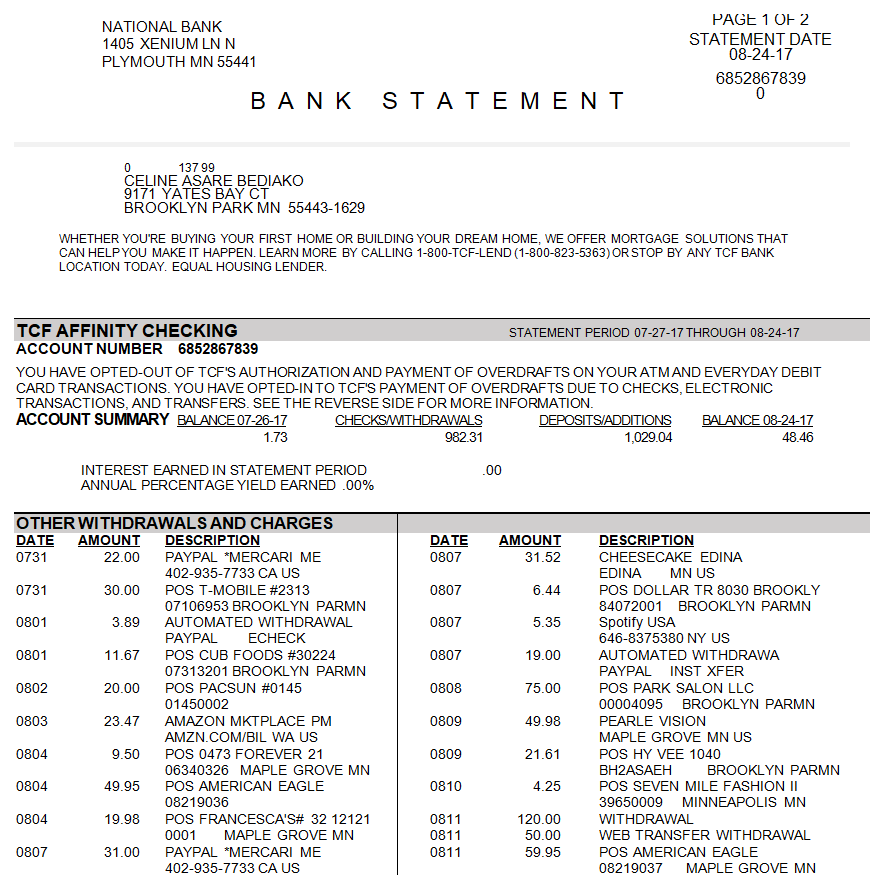 Probably the most important part of the bank statement template is the details of the transaction. Always begin with the opening balance and then write the details of all the receipts or deposits and withdrawals of payments in the bank account. The complete activity of the account during the said period must be shown in your bank statement.