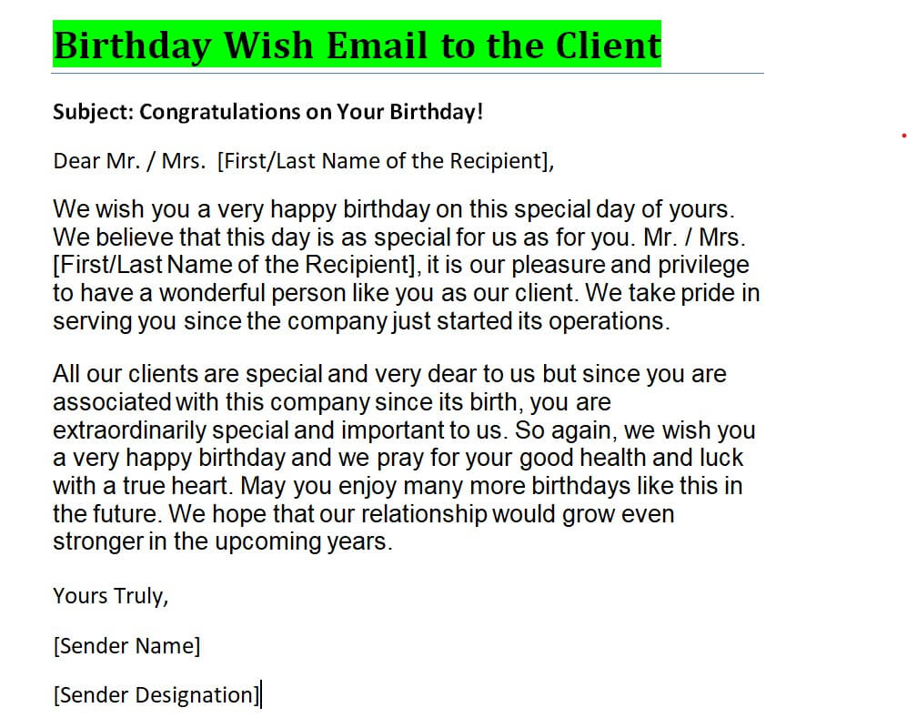 - If you are writing a birthday wish email to a client or customer, it is a good practice to mention their name within the main body of the email.