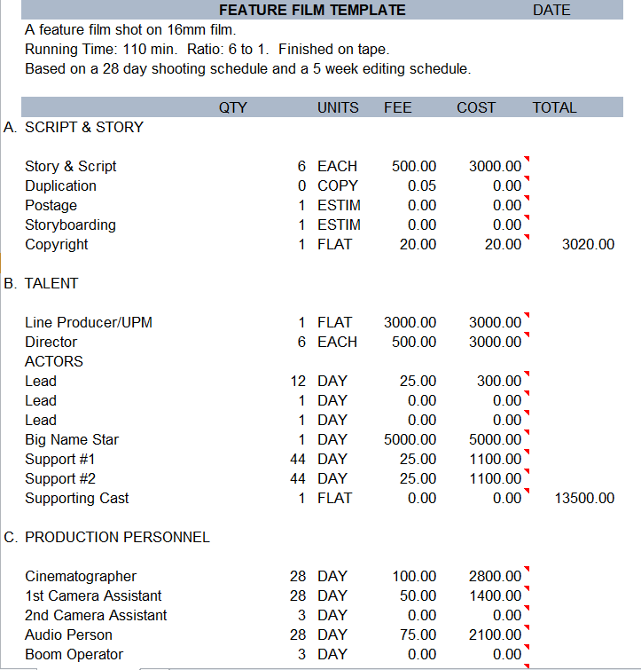 Practical Feature Film Budget Template