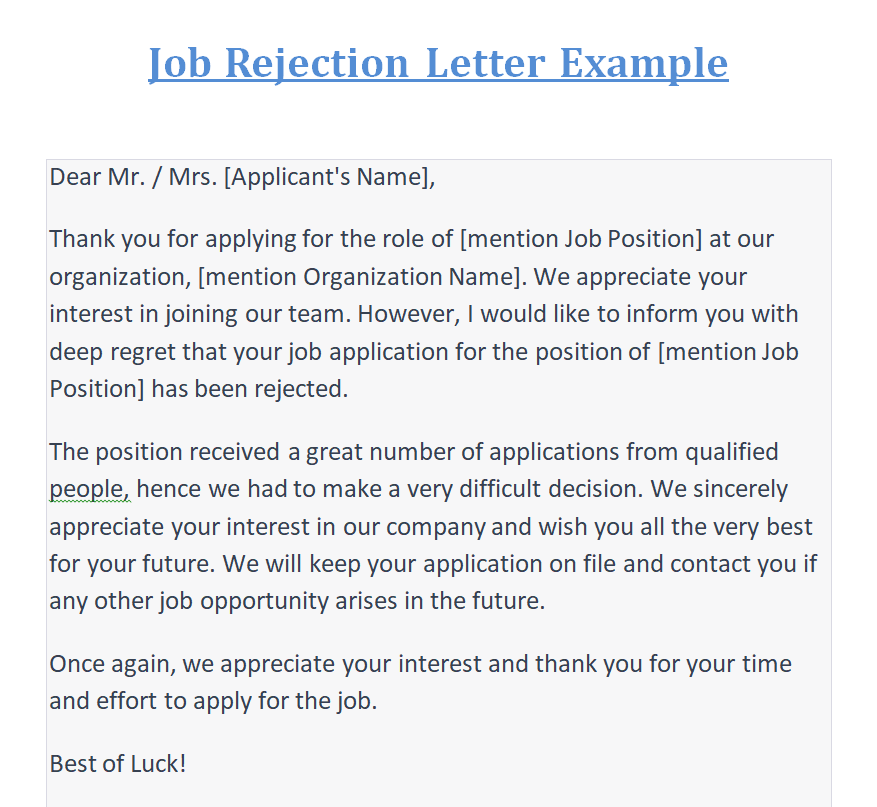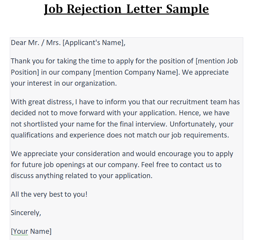 Job Rejection Letter Format Example