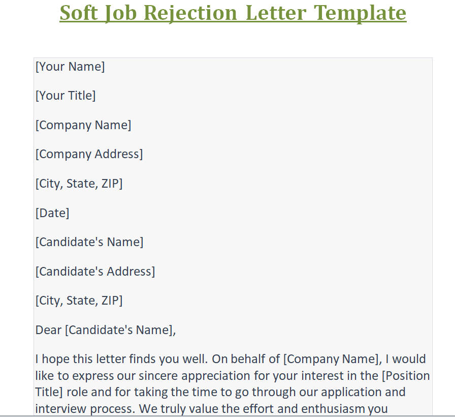 Soft Job Rejection Letter Template