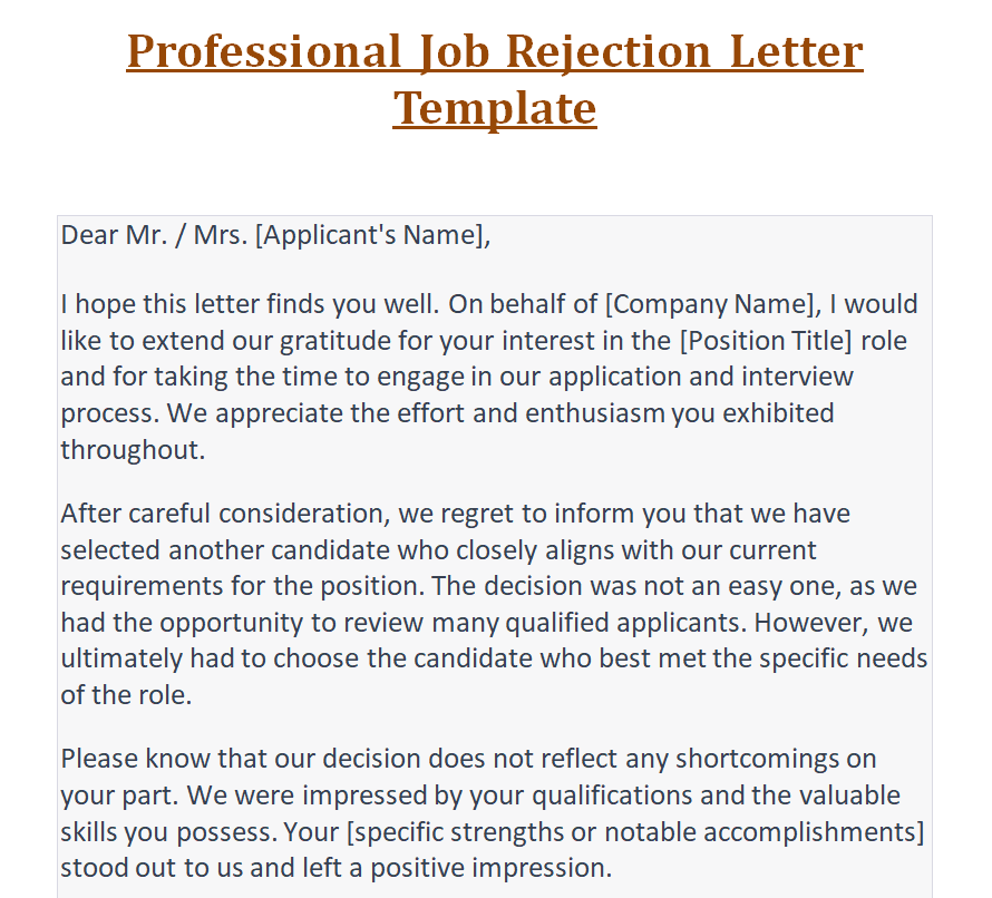 Professional Job Rejection Letter Template