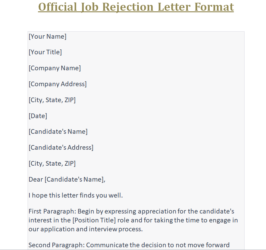 Official Job Rejection Letter Format
