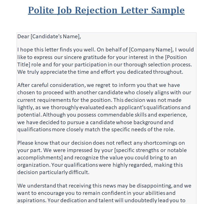 Polite Job Rejection Letter Sample