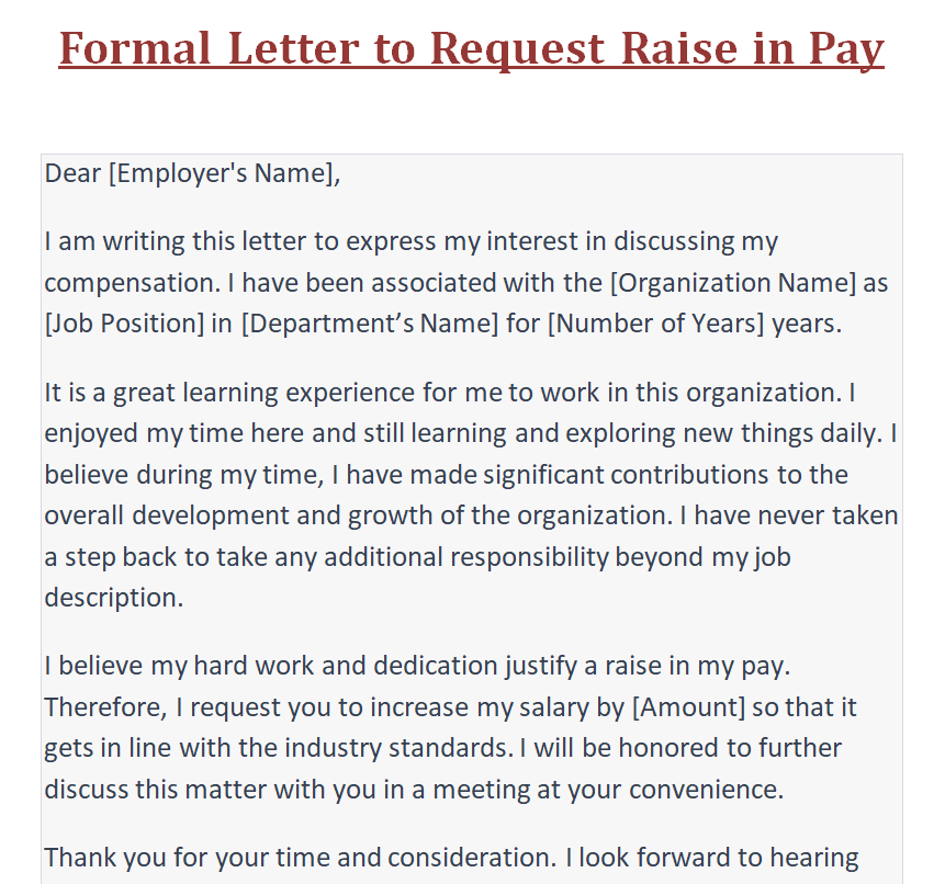 Formal Letter To Request Raise in Pay