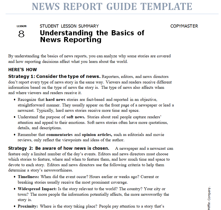 News Reporting Sample Guide Template