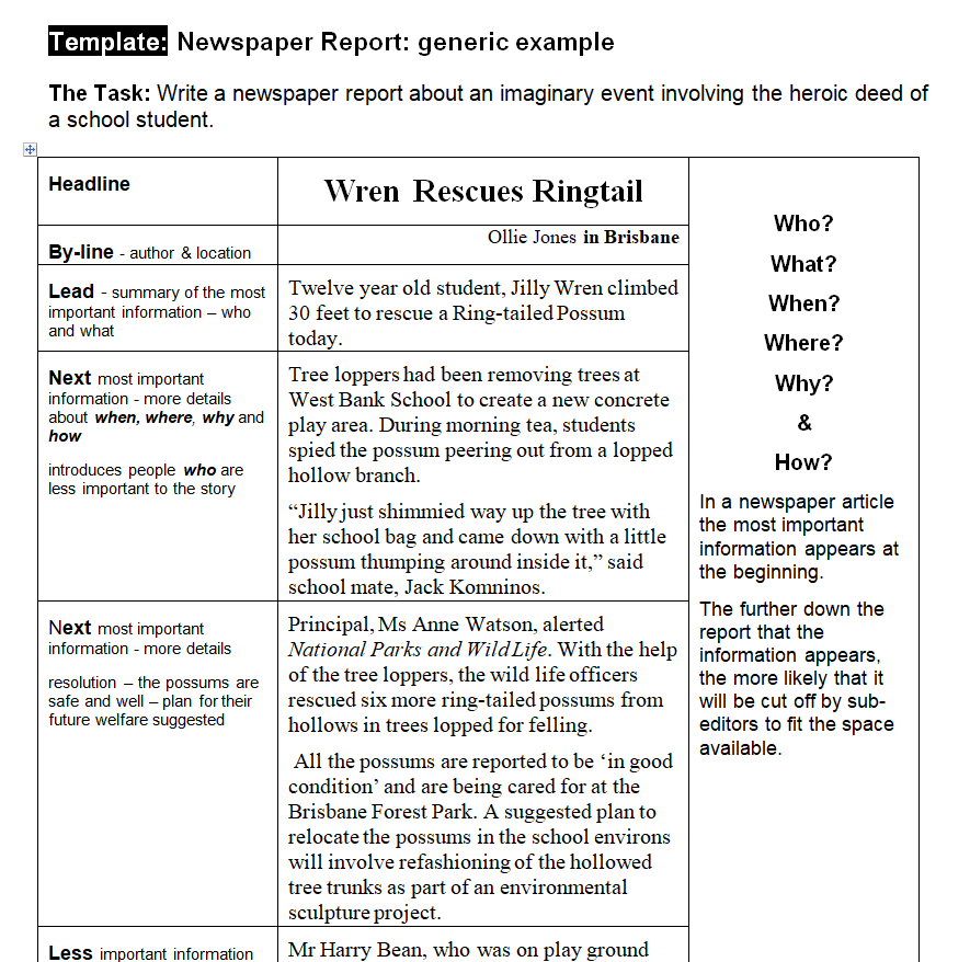 Local Newspaper Report Template WORD