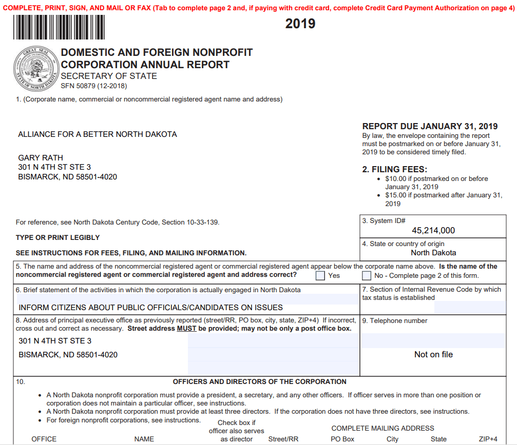 Domestic and Foreign Non-Profit Corporation Annual Report