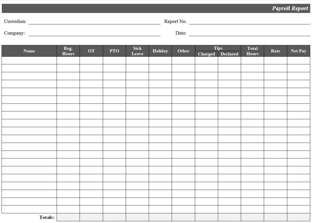 Blank Payroll Report Template