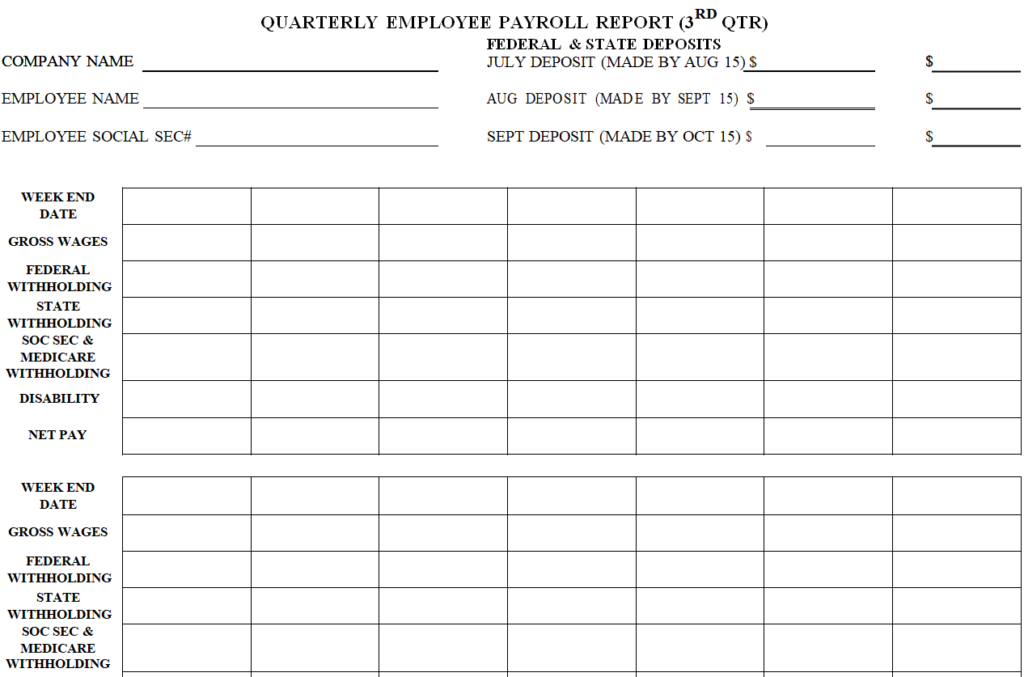 Quarterly Employee Payroll Report Template