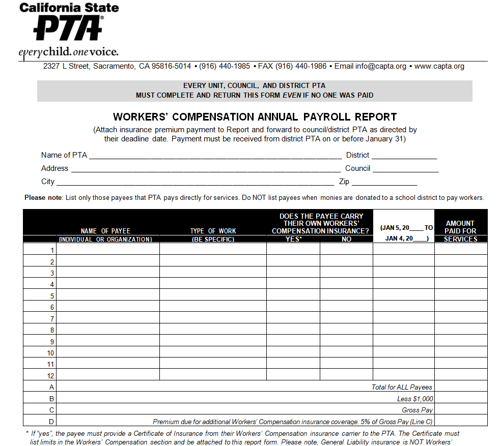 Workers’ Annual Payroll Report Template