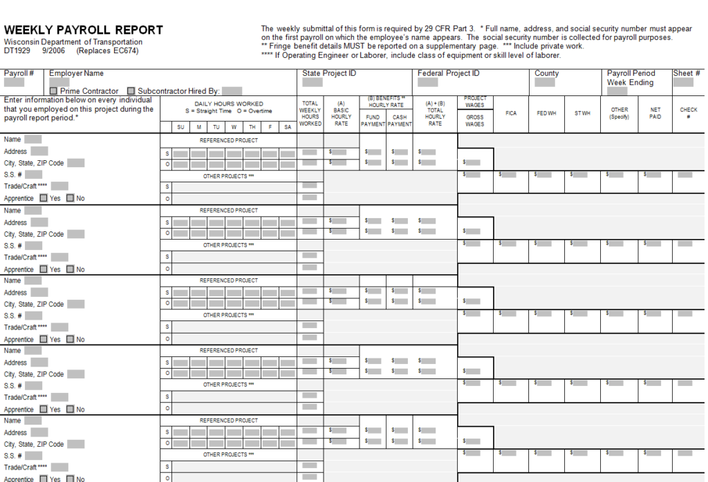 Certified Payroll Report Word Template