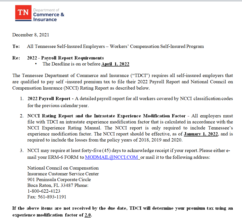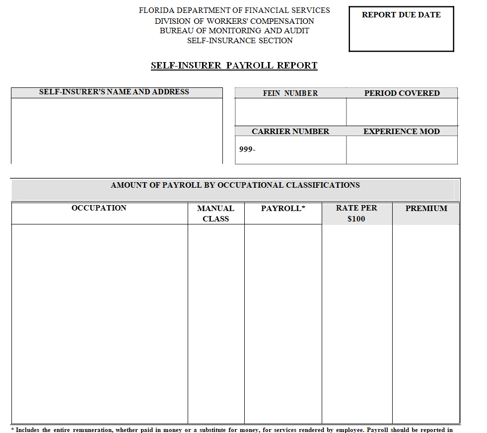 Self-Insurer Payroll Report Template in MS WORD