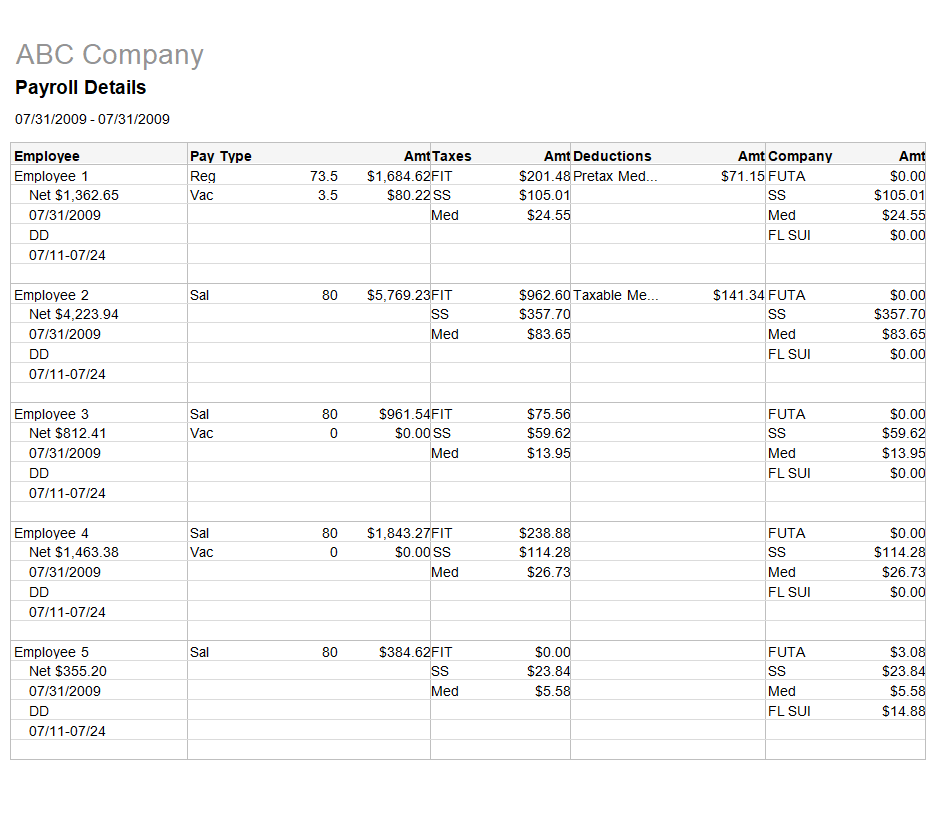 Weekly Payroll Report Example