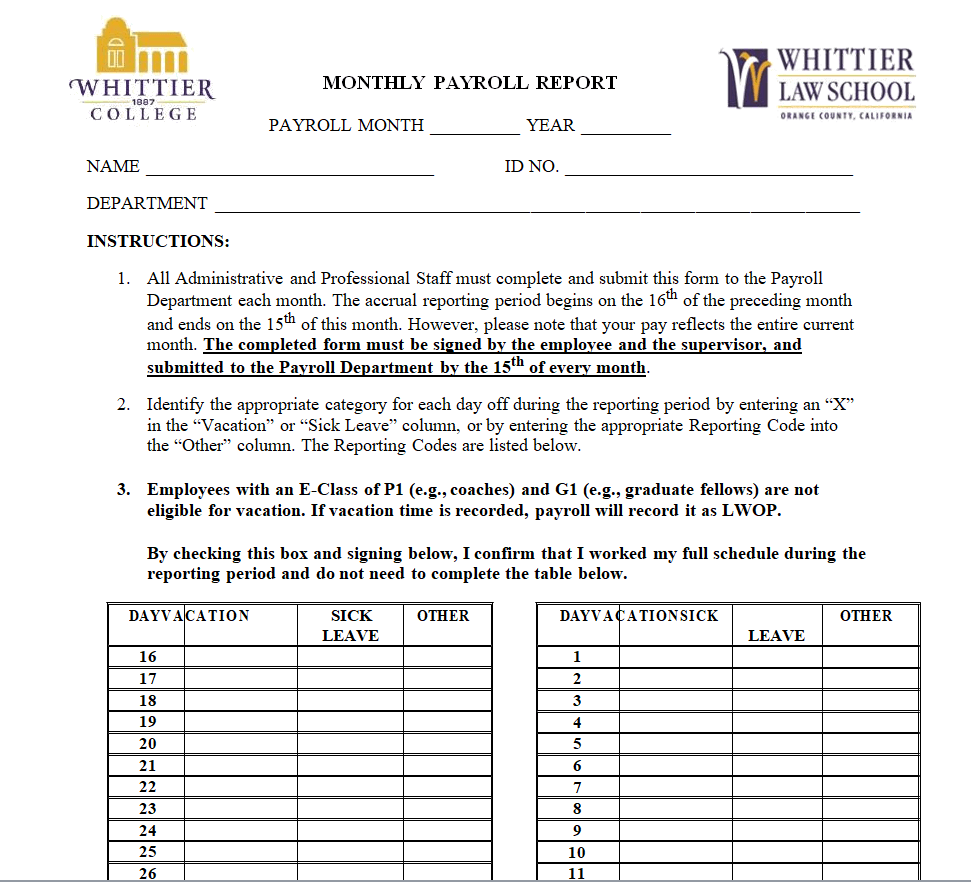 Fillable Monthly Payroll Report Template