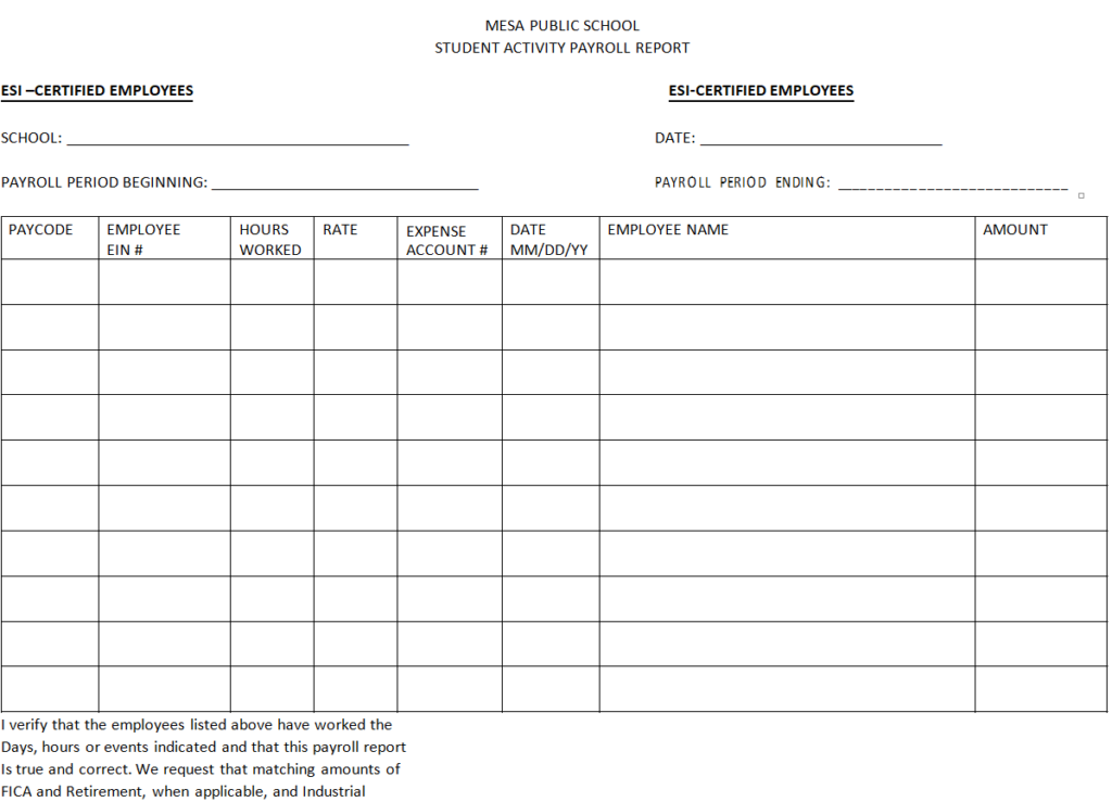 Student Activity Payroll Report Example