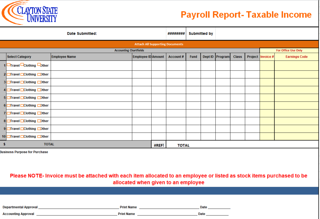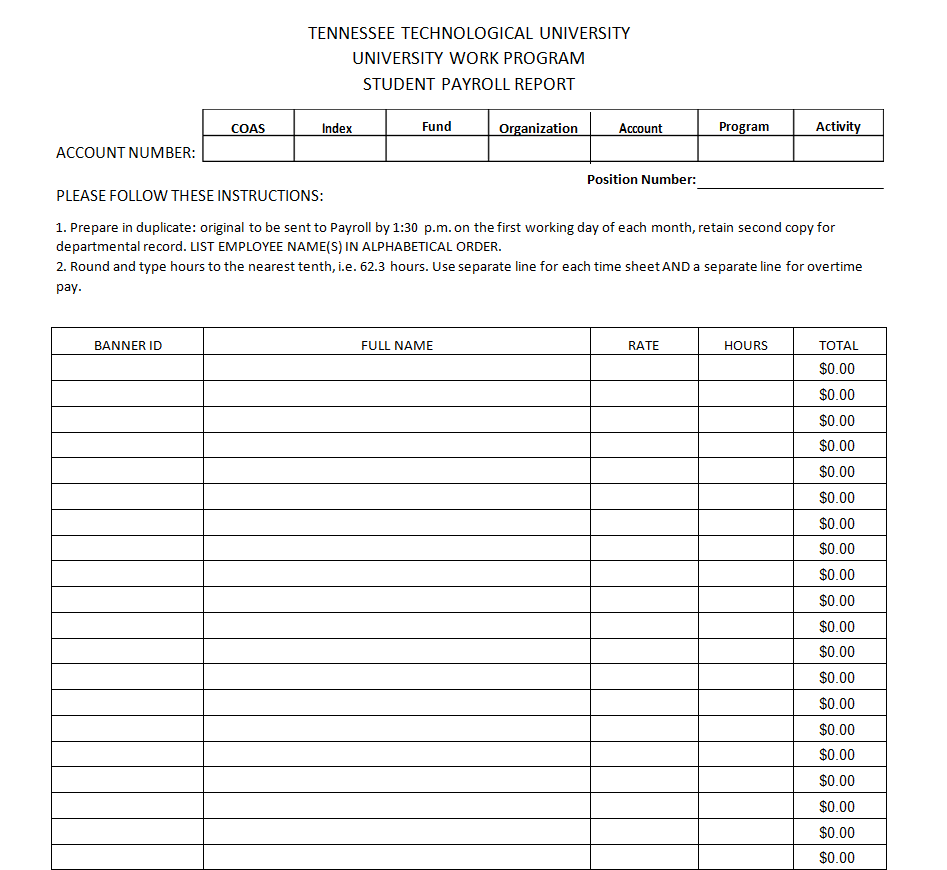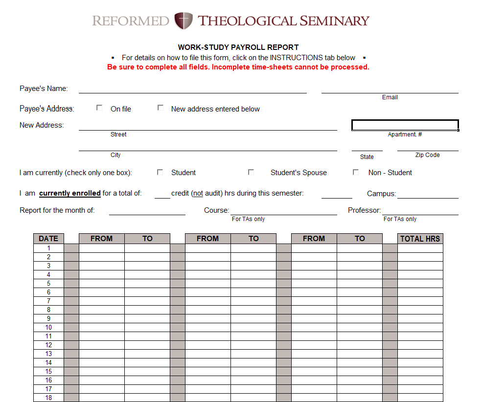 Work Study Payroll Report Form Sample