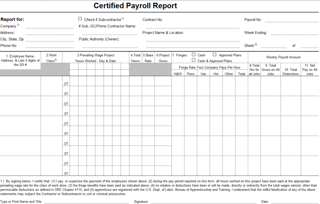 Certified Payroll Report Form Template
