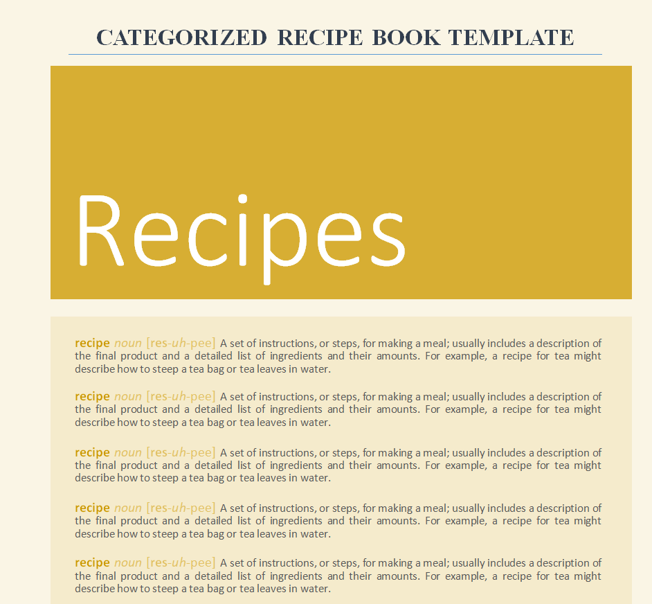 Categorized Recipe Book Template in MS WORD