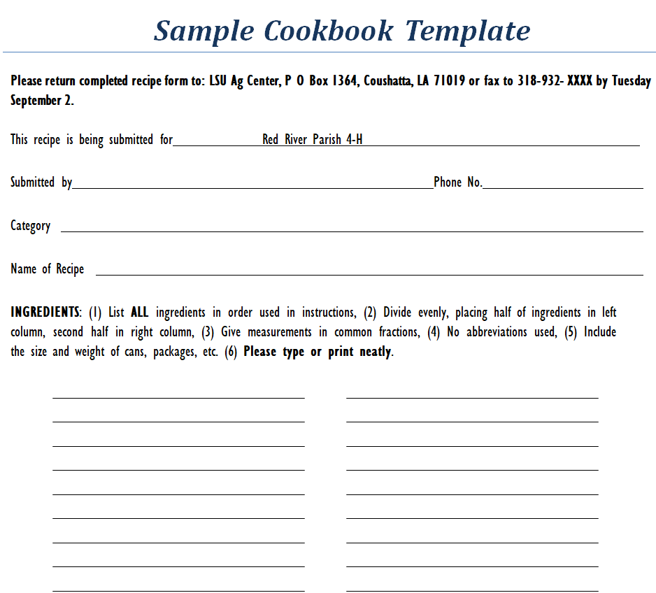 Sample Cookbook Page Word Template