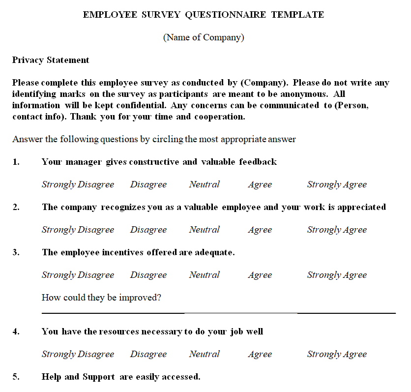 Detailed Employee Satisfaction Survey Questionnaire Example