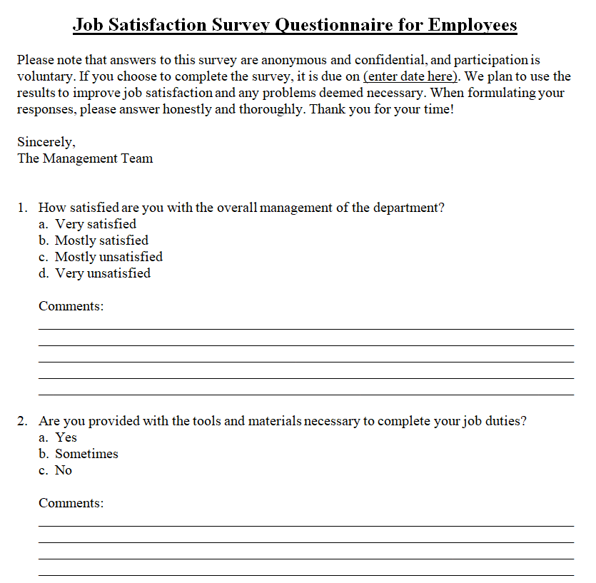Job Satisfaction Survey Questionnaire Example in MS WORD