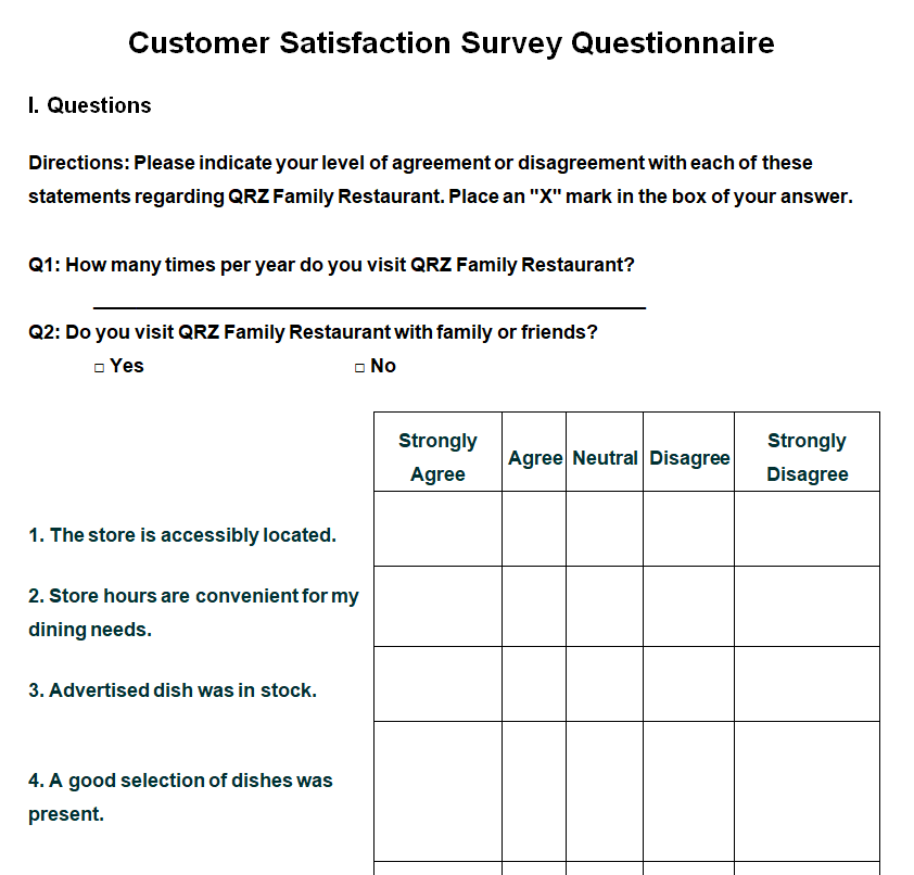 Basic Customer Satisfaction Survey Questionnaire Sample DOC