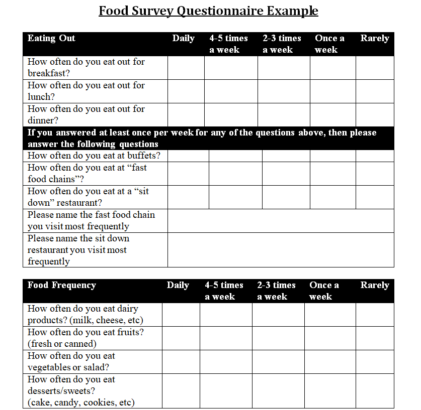 - To create an effective questionnaire quickly and easily, you can always use an editable questionnaire template. Doing so will help you create a survey questionnaire with minimal effort. You can also check the free survey questionnaire examples in Microsoft word format that are given here on this page.